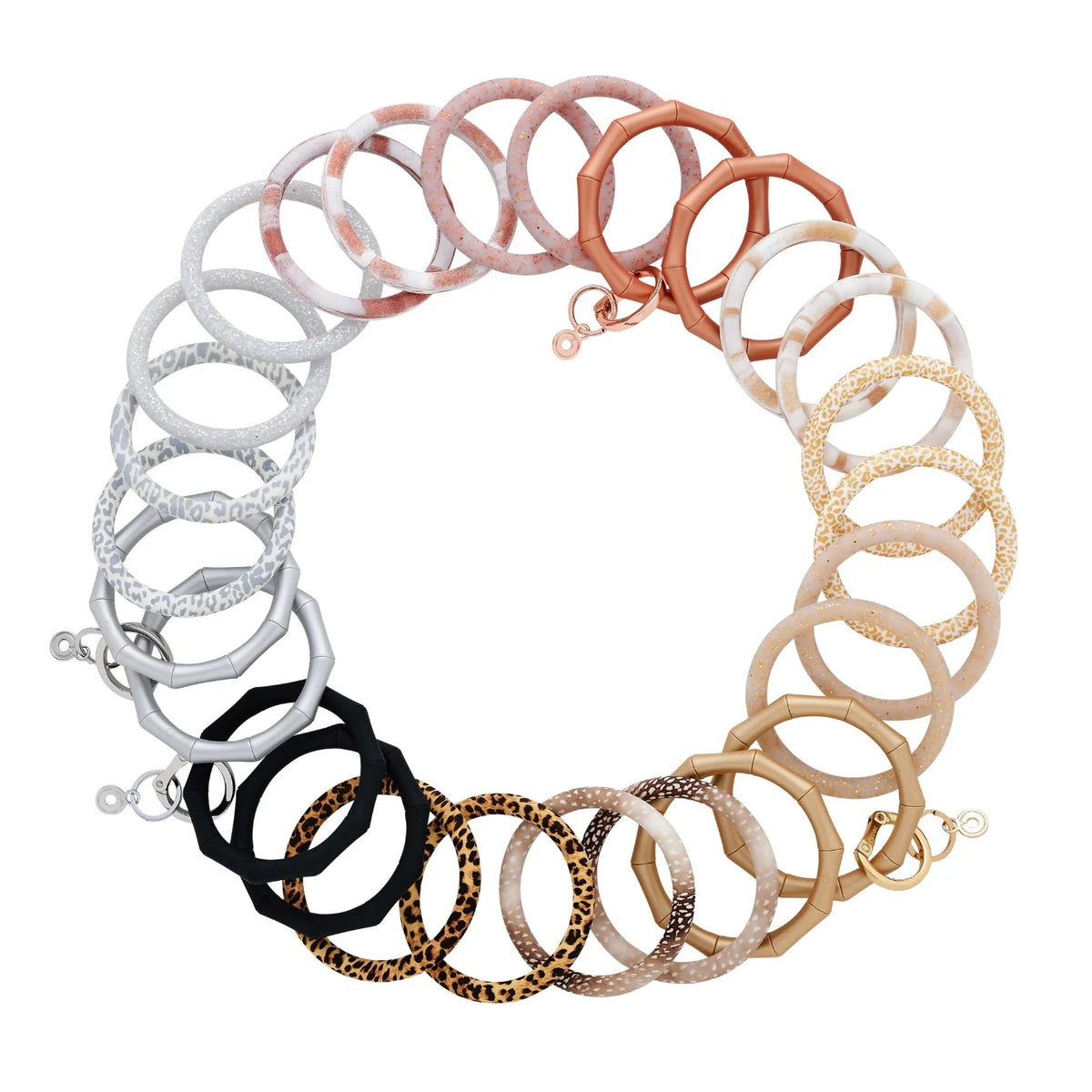 The Metallic ring is a super smooth, glam style with a subtle, pearlescent sheen and vibrant tone. The Original Big O® Key Ring is a one-size-fits-all bracelet key ring that can be worn on your forearm or above your elbow for hands-free simplicity. The patented, signature locking clasp clicks open and closed so you can keep your keys, phone and wallet in one central, secure location.