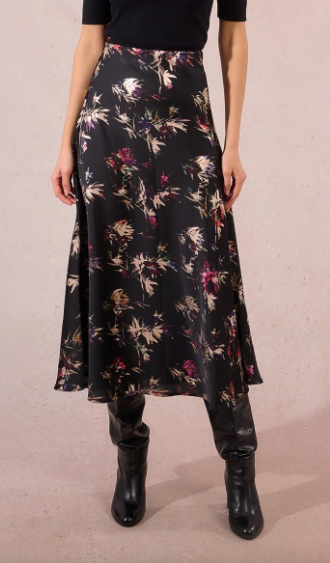 -Long skirt with floral print-Extra-high waist-Invisible zip closure-Straight fit