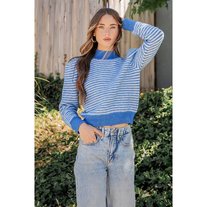 Striped Pattern Mock Neck Sweater