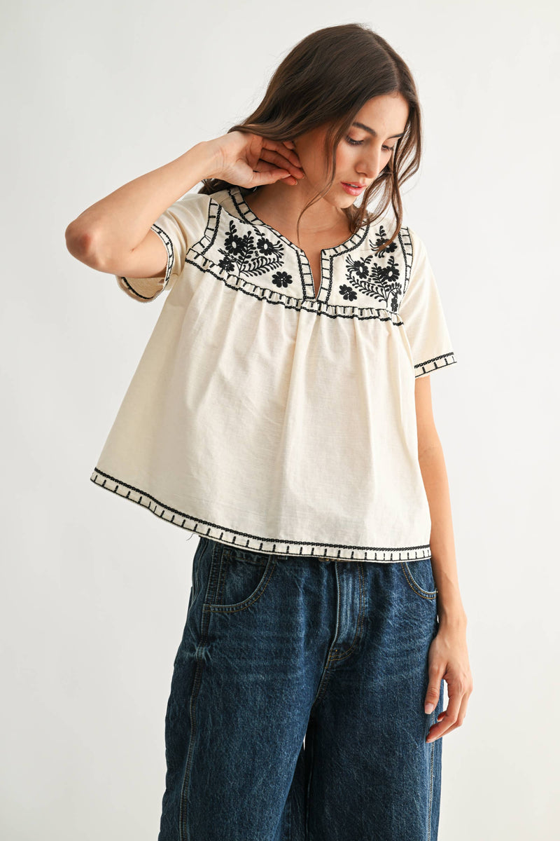 Embroidered Floral Cotton Blouse